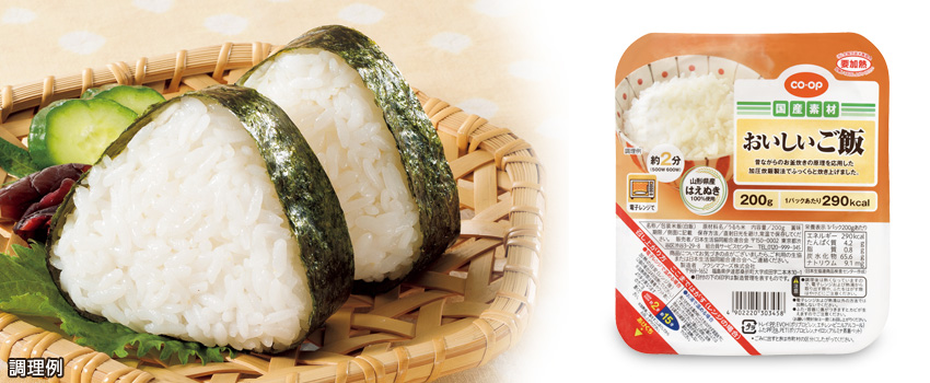 山形県産はえぬきを100%使用し、昔ながらのお釜炊きの原理を応用した加圧炊飯製法でふっくらと炊き上げました。