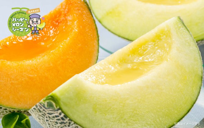 茨城県オリジナル品種のメロン“イバラキング”と、赤肉系のネット品種の“レノン”の、2色の『愛ちゃんメロン』をセットでプレゼントします!