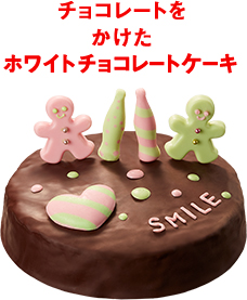 「チョコレートをかけたホワイトチョコレートケーキ」もしくは「ホワイトチョコレートをかけたチョコレートケーキ」の2種類からお好きなケーキを選べます。
