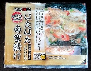 脂の乗ったハタハタを食べやすいよう開き加工し、 らっきょう酢に漬け込みました。中骨が取ってあるの で食べやすく、酢の酸味を抑えてまろやかに。