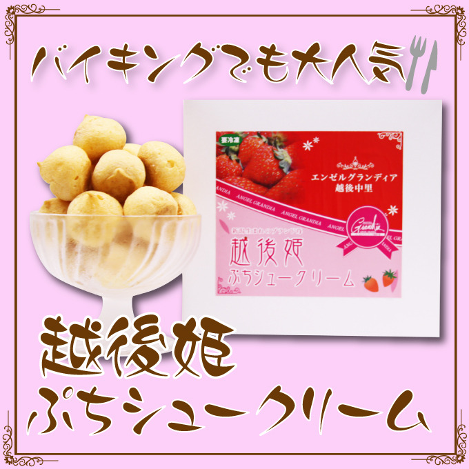 新潟のブランドイチゴ「越後姫」の入った特製ぷちシュークリームです。