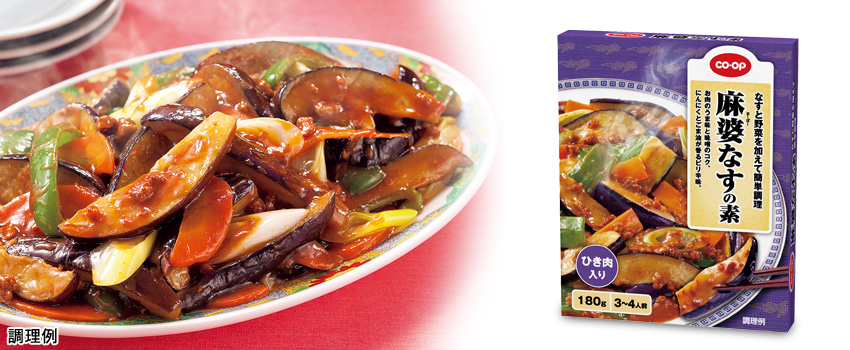 なす・野菜と一緒に炒めるだけ。ご家庭で簡単に本格的な麻婆なすをお楽しみいただけます。野菜炒めにもご利用ください。
