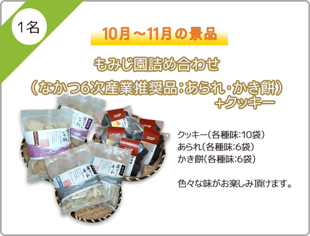 もみじ園詰め合わせを抽選で1名様にプレゼントいたします。