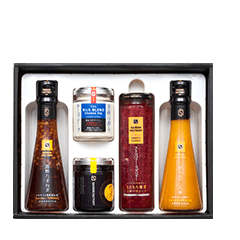 国産にんじんの甘みを活かしたドレッシングや、国産たまねぎの食感を楽しめるたまねぎドレッシング、フルーツソースやチーズディップやジャムまで、色々な味を少しずつ楽しめるギフトセット。
