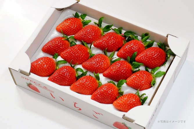 「いばらキッス」は、豊かな香りと濃厚な甘味とコク、酸味のバランスに優れており、ジューシーな味わいのいちごです。美しい紡錘形(ぼうすいけい)が特長で、見た目にも美味しさが感じられます