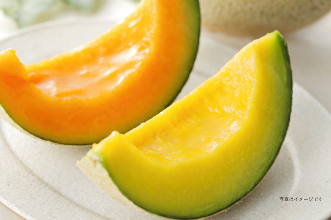 クインシーは赤肉系ネットメロンの品種で、美しいオレンジ色の果肉が特徴です。「クインシー」という品種名は、女王を表す「 Queen(クイーン ) 」と、ベータカロチンを多く含有していることから健康を表す「 Healthy(ヘルシー ) 」とを組み合わせて作られた造語だそうです。