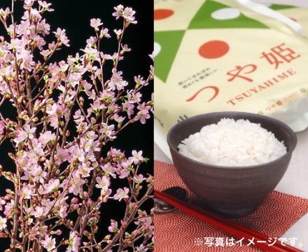 「啓翁桜」約60~80cm×8本、「つや姫」2kg