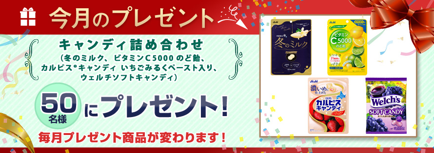キャンディの詰め合わせを抽選で50名様にプレゼントいたします。