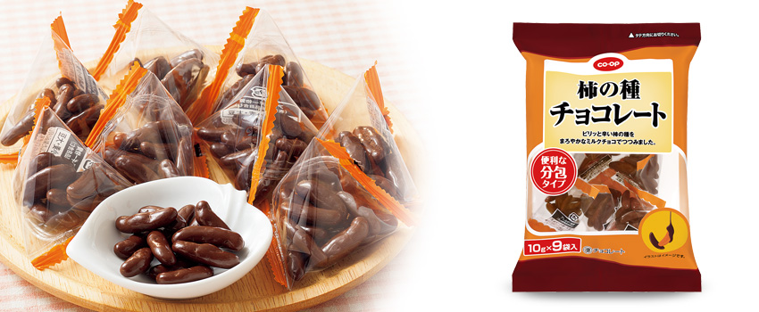 ピリッとした柿の種を、まろやかな口あたりのチョコでくるんだ、人気のチョコ菓子です。食べやすい分包タイプにしました。
