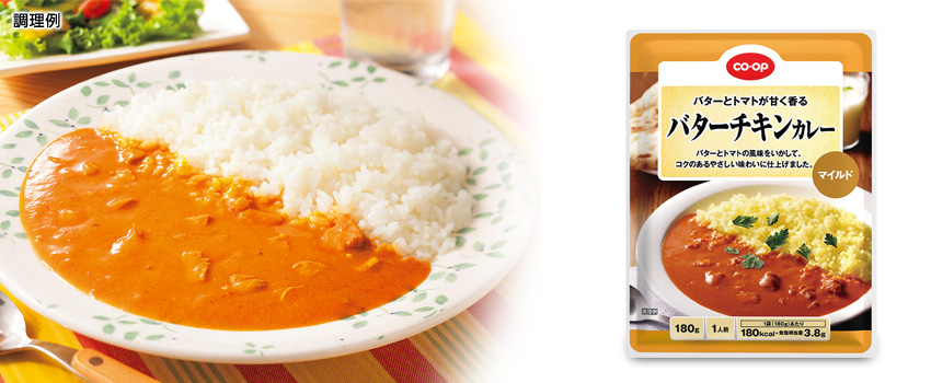バターチキンカレーは北インド地方のカレーで、バターとトマトの甘い香りのする、マイルドでコクのあるカレーです。ごはんにも、ナンにもよく合います。