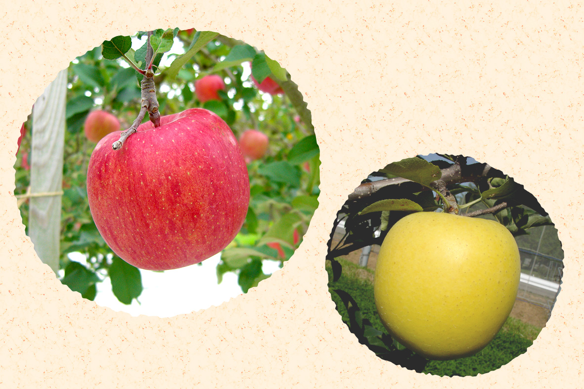 瑞々(みずみず)しくて甘味と酸味のバランスが良いと人気のサンふじと、酸味が少なく爽やかな香りと甘さの王林。2種類のりんごをお届けします。