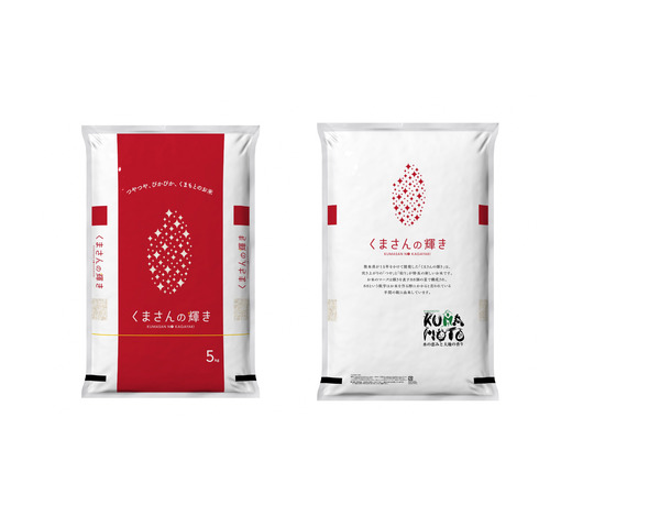 “輝き”を表す“星”と県のブランド“くまもとの赤”を基調としたデザインパッケージの「くまさんの輝き」は、熊本県農業研究センターが、15年の歳月をかけて開発した米の新品種。名前の由来は「熊本県で生まれた輝きある美しいお米」