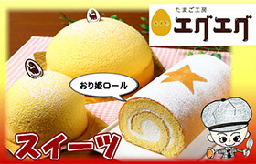 新鮮な卵と牛乳を使用したふわふわ食感の「ひよこドーム/610円」や「エッグドーム/1380円」、「おり姫ロール/870円」が人気。お土産にも最適です。