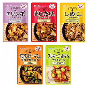 シンプルステップでサッと作れて野菜がしっかり摂れる「エリンギのソテーソース」「まいたけのソテーソース」「しめじのソテーソース」「なすとピーマンの味噌炒めのたれ」「ズッキーニとトマトのマリネソース」を。