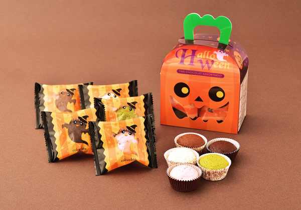 苺や抹茶など5種類の焼きショコラを詰め合わせた「ハロウィン パーティー焼きショコラアソート」と、マロン、パンプキン、コーヒー味のクリームをサンドしたラングドシャクッキーを詰め合わせた「ハロウィン メルヴェイユコンコルド」