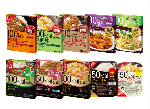 「今までの食事では量もカロリーもちょっと多い」という人にぴったりの大塚食品のレトルト食品「マイサイズ」シリーズ。豊富なメニューが揃った「マイサイズ」に加え、塩分・たんぱく質・糖分が気になる人に、より食事を楽しんでもらえるよう“プラス”の付加価値をつけた、調剤薬局、病院内売店専門商品の「マイサイズ いいね!プラス」もあります