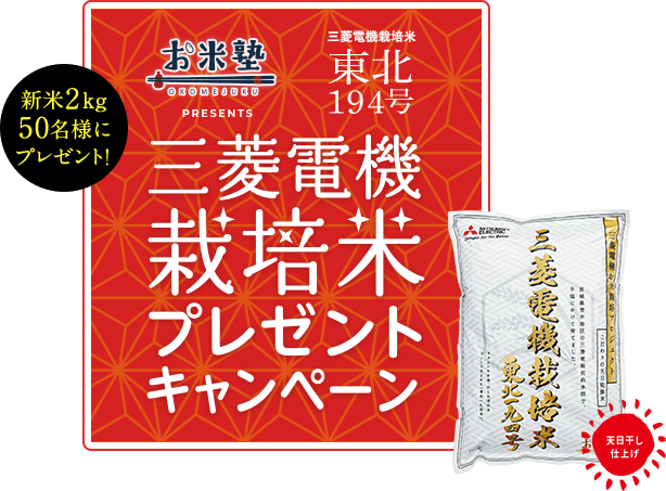 三菱電機 栽培米 新米2kg を抽選で50名様にプレゼントいたします。