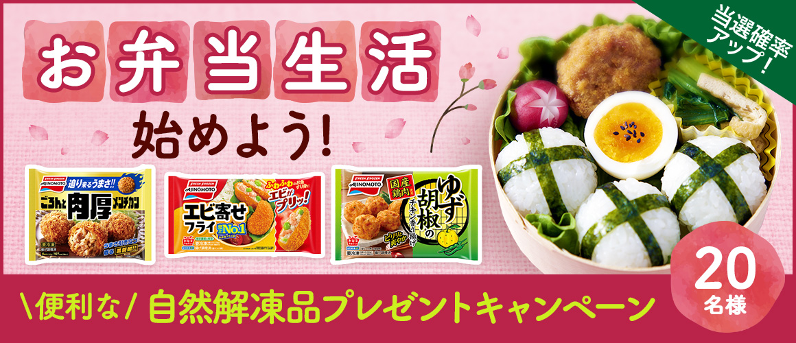 初めてのお弁当づくりにおすすめ!自然解凍シリーズの商品をセットにして20名様にプレゼント!
