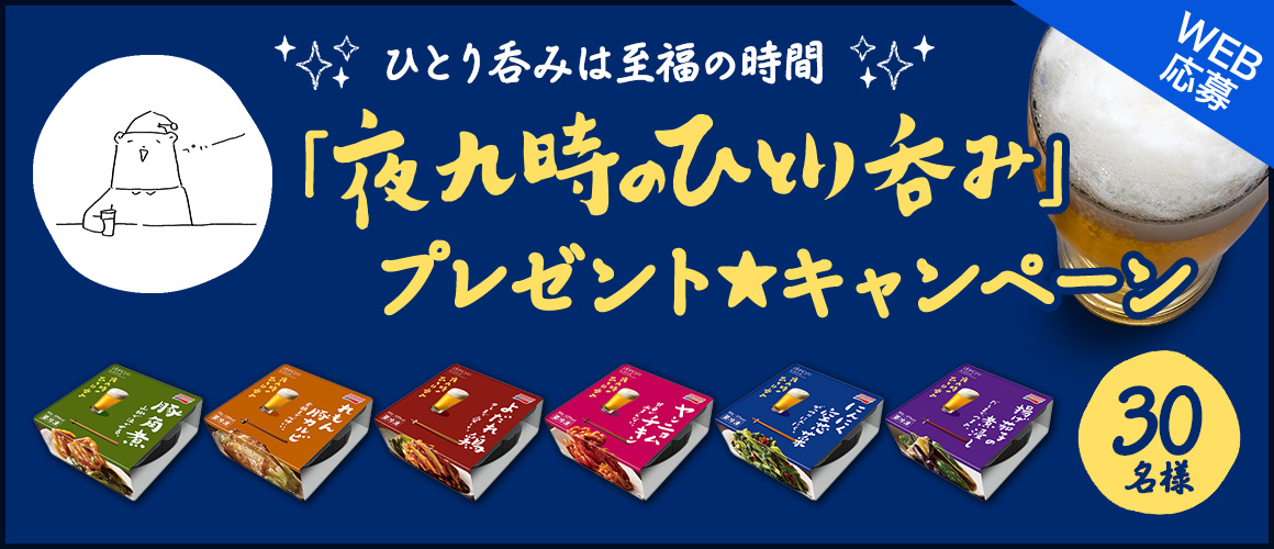 ひとり呑みのおつまみにちょうどいい♪「夜九時のひとり呑み」シリーズ全6品種を抽選で30名様にプレゼント!