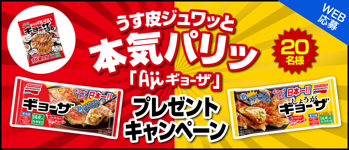 味の素のギョーザのセットを抽選で20名様にプレゼントいたします