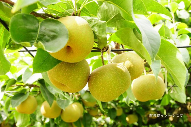 7月下旬からのハウス梨(幸水)を皮切りに、豊水、あきづき、県オリジナル品種の恵水、新高、にっこりなど、品種を変えながらおいしい梨を秋まで楽しむことができます。