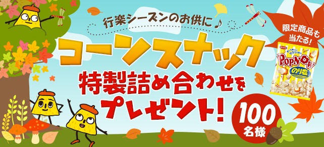 コーンスナック特製詰め合わせを抽選で100名様にプレゼントいたします。