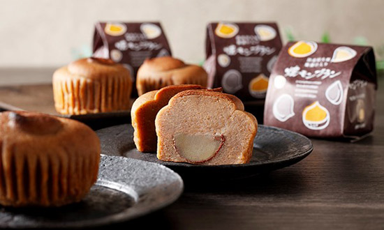 焼きモンブランは、小麦粉を使わず、渋皮付きの栗をマロンペーストで包み込み、しっとりと焼き上げました。