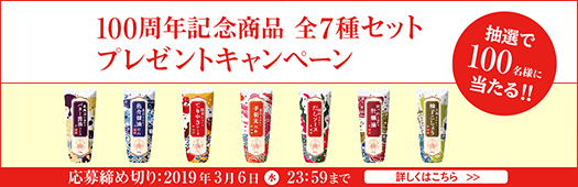 100周年記念商品 全7種セット』を抽選で100名様にプレゼントいたします。