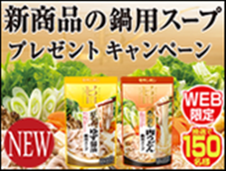 新商品の鍋用スープを抽選で150名様にプレゼントいたします。