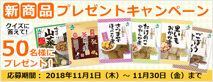 「お箸倶楽部 ごぼう煮しめ」などを抽選で50名様にプレゼントいたします。