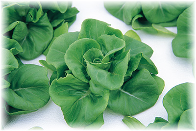 艶やかな緑色の葉が、花びらのように重なったサラダ菜は、レタスの一種。レタスは淡色野菜ですが、サラダ菜は緑黄色野菜に分類され、βカロテンと鉄分が豊富です。