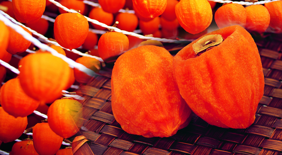 「あんぽ柿」とは、天日に干す「天干(あまほし)」、 干すと甘くなる「甘干(あまほし)」から